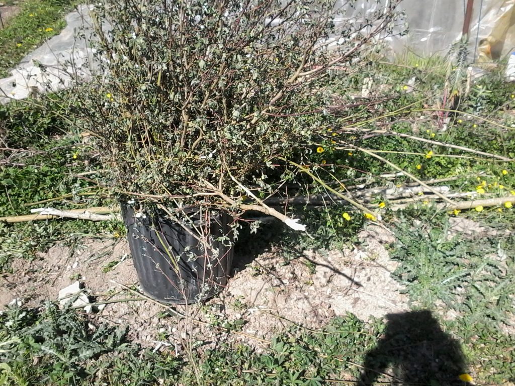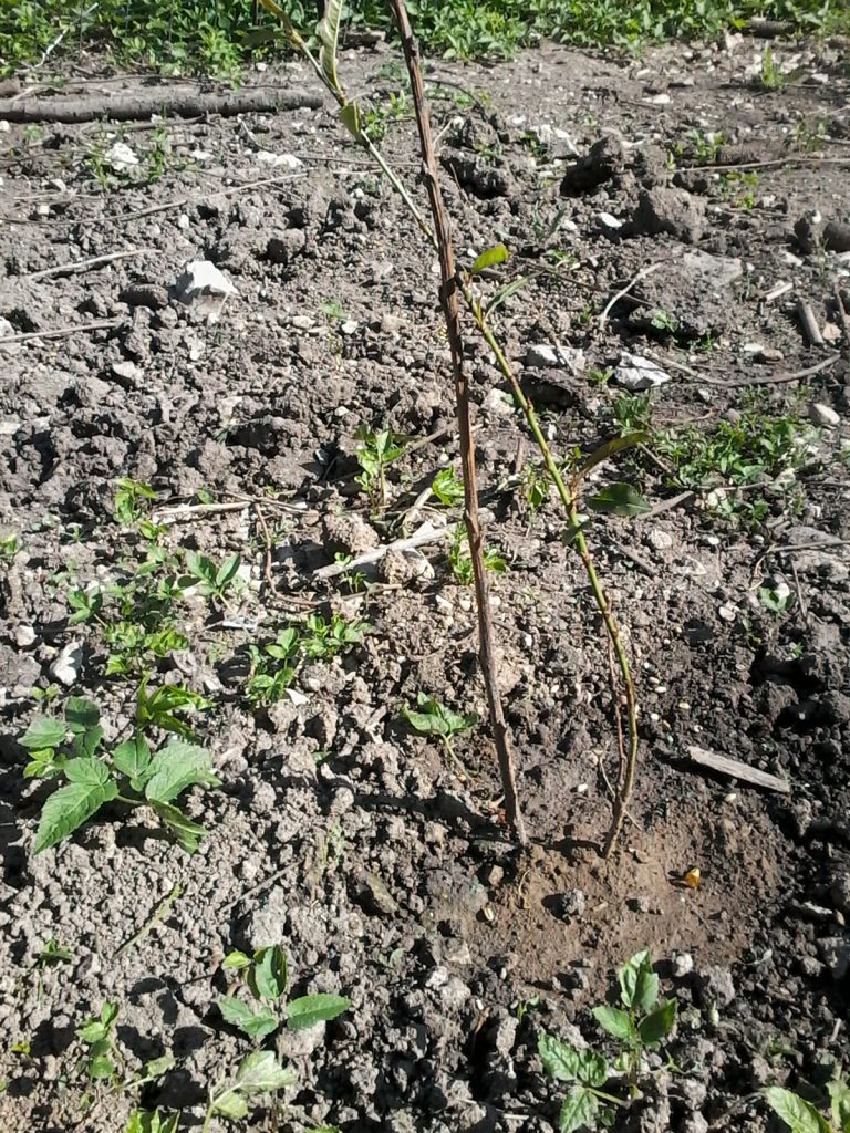 Les arbrisseaux ont été plantés. J’ai laissé les branches se développer sur le porte greffes.