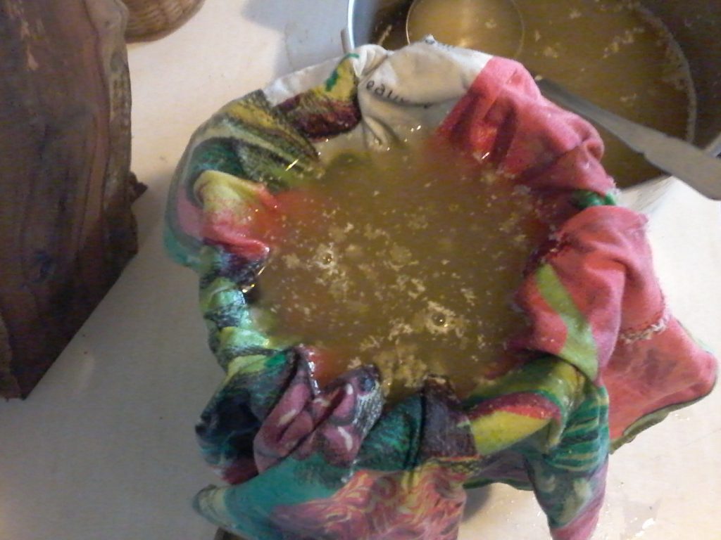 On commence par filtrer un litre de la boisson au sureau en utilisant un chiffon propre et fin mis dans un entonnoir.