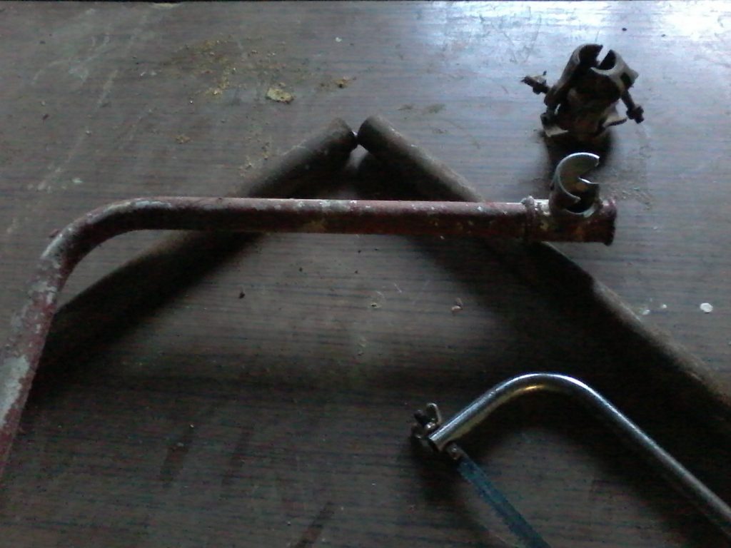Je commence par couper la barre principale en deux parties. Puis avec un tuyaux recycler je découpe une barre transversale.