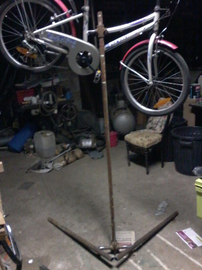 Lors d’un atelier de réparation de vélo un ami m’a fait remarqué qu’il me serait utile de me faire… un pied d’atelier.